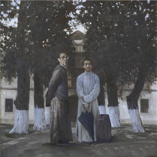 翁誕憲 《林風(fēng)眠與恩師梁伯聰》 200×200cm