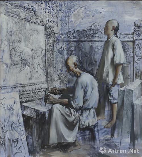 曹立偉 《林風(fēng)眠跟祖父打石碑》 200×180cm